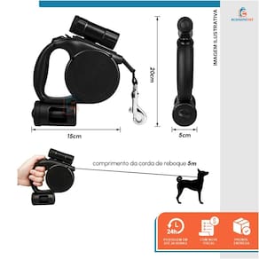Explore a cidade ou trilhas com seu fiel companheiro com a Guia Retrátil para cães e gatos. Uma combinação perfeita de praticidade e segurança para aventuras juntos. Este guia retrátil oferece controle máximo durante os passeios e inclui uma lanterna de LED integrada para visibilidade extra. Com sistema giratório de 360° evita emaranhados e proporciona maior liberdade de movimento para seu pet.