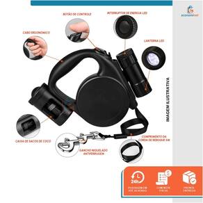 Explore a cidade ou trilhas com seu fiel companheiro com a Guia Retrátil para cães e gatos. Uma combinação perfeita de praticidade e segurança para aventuras juntos. Este guia retrátil oferece controle máximo durante os passeios e inclui uma lanterna de LED integrada para visibilidade extra. Com sistema giratório de 360° evita emaranhados e proporciona maior liberdade de movimento para seu pet.