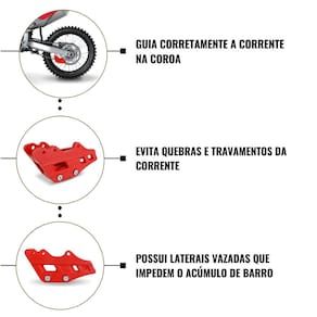 Ideal para a prática da trilha, motocross, enduro, velocross entre outras modalidades off-road, este guia garante que você possa desafiar seus limites sem preocupações com correntes escapando ou barulhos que distraem sua concentração durante a pilotagem.