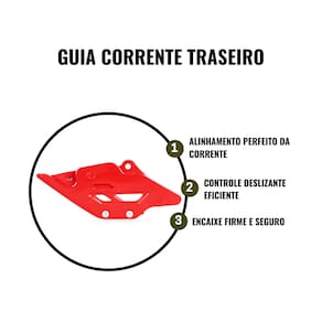 Além de guiar a corrente, é projetado para se encaixar perfeitamente em uma variedade de modelos, oferecendo durabilidade, estilo e funcionalidade para a prática do motocross, trilha, enduro e outras modalidades off-road.