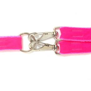 Guia dupla confeccionada em tecido nylon com camurça; Costura reforçada; Regulagem de tamanho para as duas guias, Totalmente ajustável, permite levar 2 cachorros de diferentes tamanhos segurando apenas uma guia. Mosquetão com trava de segurança; Feixe giratório; Evita o empolamento das guias; Segura e confortável; Disponível na cor: rosa Tamanho: único. Medidas aproximadas: 70 cm à 1 metro de comprimento. Guia removível, podendo ser utilizada para passear com 1 um ou 2 dois cachorros Marca: Não Informado Ean: 7436150052188