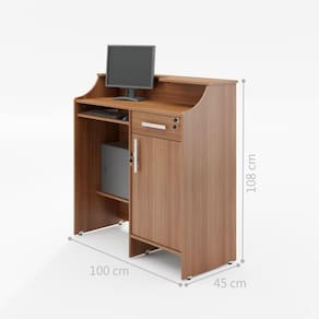Gaveta com corrediças metálicas, chave e porta cédulas; abaixo porta objeto com prateleira; pés com niveladores de altura.