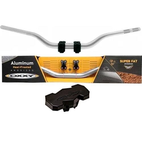 Conheça o Guidão Oxxy com Adaptador + Espuma: Os guidões Oxxy oferecem resistência e performance na pilotagem, permitindo que o piloto possa ir mais rápido e com maior controle sobre a moto, tornando a pilotagem mais confortável. Características do Guidão Oxxy com Adaptador: Fabricado com alumínio 6061-T6 e com 31,75 mm de espessura garante resistência ideal para todas as situações (motrocross ou trilha); Gravação à laser dos ângulos de instalação do guidão; Maior conforto e controle ao pilotar sua moto; Itens inclusos no Guidão Oxxy com Adaptador: Espuma protetora de alta densidade; Adaptador de 31,75 mm em alumínio usinado em maquina CNC 04 Parafusos; Medidas aproximadas do Guidão Oxxy com Adaptador: Largura: 810mm; Diâmetro central: 31,75 mm; Diâmetro nas extremidades: 22,2mm; Altura do modelo Baixo: 85mm; Altura do modelo Alto: 110mm; O Guidão Oxxy Fat Bar é universal, podendo ser instalado em qualquer moto off-road desde que possua um adaptador para tal. Confira as medidas dos guidões OXXY: