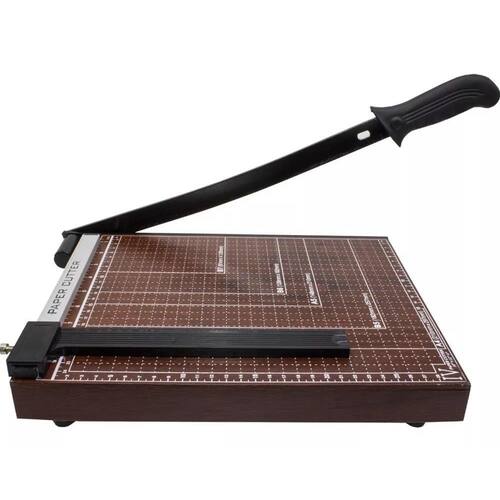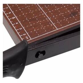 - Trava de segurança lateral e cabo com punho em plástico - Fixador de papel ajustável - Pés emborrachados para maior estabilidade e segurança durante o corte - Ideal para trabalhos escolares, escritórios e papelarias