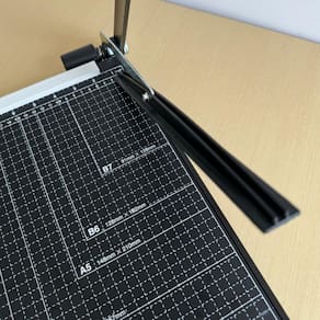 Tamanho a3 com marcação versátil a guilhotina é ideal para papéis no tamanho a3 e possui marcações auxiliares em diversos formatos a3, a4, b4, a5, b5, b6 e b7 ,