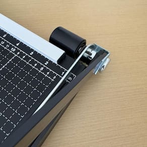 Design funcional e ergonômico equipado com pés emborrachados, a guilhotina oferece estabilidade e evita deslizamentos indesejados na superfície de trabalho.