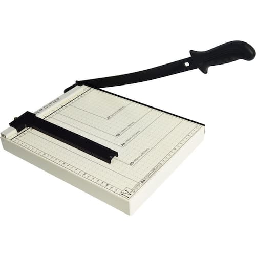 A guilhotina A4 é ideal para papeis de até 8 a 10 folhas, proporcionando agilidade e segurança no uso.
