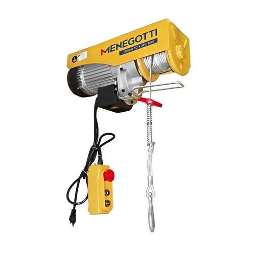 Contém: - Guincho Coluna Prime V2 Menegotti. - Cabo de aço galvanizado de 12,5 m. - Gancho de fixação para 500 kg. - Moitão para operações de 1000 kg.