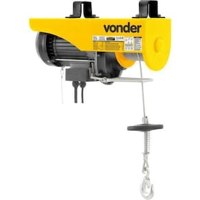 Conteúdo da embalagem1 Guincho elétrico. Acompanha: 1 polia de inversão com gancho.Aplicações e dicas de usoIndicado para movimentação de cargas verticais em prédios, casas, andaimes, torres, entre outros. Não aplicável para uso contínuo, respeitar o fator de trabalho do equipamento.Destaques e diferenciaisPossui fim de curso e botoeira com chave de emergência, caso seja necessária uma parada rápida do guincho DETALHES TÉCNICOS Capacidade de carga sem gancho e polia de inversão : 300 kg Capacidade de carga com gancho e polia de inversão : 600 kg Altura máxima de elevação sem gancho e polia de inversão : 12 m Altura máxima de elevação com gancho e polia de inversão : 6 m Potência W :1050 Fator de trabalho do guincho elétrico: 20% - 10 min Rotação do eixo do motor: 3.360 rpm Índice de proteção IP do motor elétrico: IP40 Diâmetro do cabo de aço: 3/16 - 4,76 mm Construção do cabo de aço: 18 x 7 AA Categoria de resistência do cabo de aço: 1960 N/mm Comprimento máximo do cabo sem gancho e polia de inversão : 12 metros Comprimento máximo do cabo com gancho e polia de inversão : 6 metros Rotação do tambor: 44 rpm Velocidade de elevação com gancho e polia de inversão : 5 metros/minuto Velocidade de elevação sem gancho e polia de inversão : 10 metros/minuto Tensão V : 220 V Frequência Hz : 60 Hz Prazo de garantia: 6 meses Ean: 7893946485573