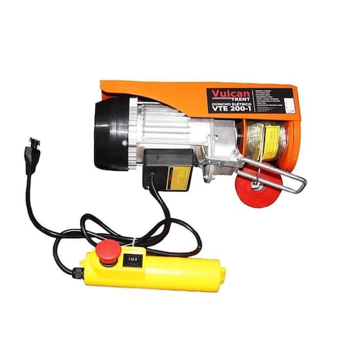 APARELHO DE ELEVAÇÃO OU DE MOVIMENTAÇÃO ACIONADO POR MOTOR ELETRICO 110V COMPOSTO DE UM TAMBOR HORIZONTAL, COM CAPACIDADE DE TRAÇÃO DE 200KG COM CABO DE AÇO PARA ELEVAÇÃO DE CARGAS DENOMINADO COMERCIALMENTE DE GUINCHO ELETRICO. O MOTOR É ACIONADO ATRAVÉS DE UM CONTROLE COM BOTOEIRA PENDENTE COM DOIS MOVIMENTOS, QUE ENROLA O CABO DE AÇO EM UM CARRETEL HORIZONTAL PARA ELEVAR A CARGA. CLASSIFICAÇÃO DE GRAU DE PROTEÇÃO DO MOTOR IP65 E DA BOTOEIRA IP55. DENOMINADO COMERCIALMENTE GUINCHO ELETRICO MARCA VULCAN TRENT MODELO VTE200-1 REF:. 10331/82283 Acabamento: Pintura Altura: 40 cm Ambiente Principal: Comércio Carga máxima: 200 kg Certificado: CREA 62314 Informações Complementares: 12 metros de corrente Itens Inclusos: Talha eletrica Largura: 30 cm Linha ou Coleção: Guincho Material Principal: Latão Origem do Produto: Importado Peso: 9 kg