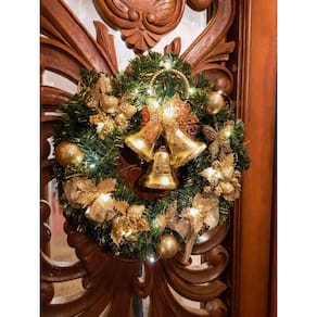 A Guirlanda com Luzes da Amor Lindo vai deixar a sua decoração de Natal mais encantadora. Lindíssima, é feita em material plástico e conta com 40 cm de diâmetro, cada enfeite foi cuidadosamente colocado a mão para deixar seu natal charmoso. Todo o processo é feito com muito carinho. Charmosa e elegante, ela é perfeita para qualquer ambiente. Detalhes: Guirlanda natalina com luzes de LED, decorada. Modelo: Guirlanda Natalina Amor Lindo de Luxo Cores: verde, cobre, branco e dourado Material: Plástico, gliter, tecido, cola e metais. Tamanho: 40 cm Luzes: 2o Micro luzes de LED, funciona com 2 baterias CR 2032 já inclusas. Celebre as festividades Natalinas com sua família e a chegada desta data especial.