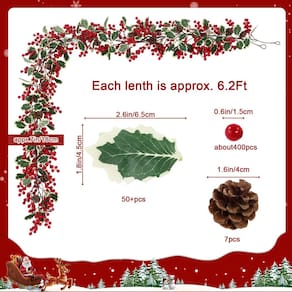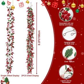 U'Artlines Guirlanda de pinha de cereja vermelha artificial de Natal para lareira de manto, uso interno e externo. Comprimento: cada guirlanda de frutas vermelhas de Natal tem 1,9 m de comprimento e 0,2 m de largura. Conteúdo da embalagem: Guirlandas artificiais de frutas vermelhas e pinhas de Natal com folhas de azevinho x 2 Aplicações: - Torne-se guirlandas: dobre-as na forma desejada, basta vincular o anel com o gancho a parte inferior, você pode facilmente transforme a guirlanda em guirlandas de Natal. - Decorações de Natal: a guirlanda de Natal tem muitas frutas vermelhas requintadas, pinhas, elas tornam esta guirlanda cheia de vitalidade e diversidade. - Decoração externa e interna: a guirlanda é adequada para decorar portas, escadas, estantes, mental, telhado, arco, árvore de Natal e assim por diante. - Pacote e tamanho: 2 peças guirlanda de frutas vermelhas de Natal: cada guirlanda de natal tem 7 pinhas, 59 ramos decorados com 7 ramos de frutas vermelhas e 57 peças de folhas de azevinho. 1,9 m de comprimento e 17 polegadas de largura. Cada ramo de baga vermelha tem 7 frutas. Encantador e atraente - Guirlanda de Natal durável: feita à mão com tecido, plástico e espuma. Não racha, não desbota, durável e vívida. Você pode torcer as videiras artificiais com frutas vermelhas ao redor dos corrimãos de uma escada ou fazer delas uma guirlanda pendurada em qualquer lugar - Guirlanda de verdura de Natal realista: as guirlandas de frutas vermelhas de Natal são brilhantes e bonitas, não murcham e nunca desbotam. A linda guirlanda de frutas vermelhas fará você gostar de estar na natureza - Guirlanda de frutas vermelhas de Natal: as guirlandas de Natal com folhas de baga e azevinho são decoração perfeita para ambientes internos, externos, varandas, janelas, mesas de jantar, escadas, decoração de outono, casa, mesa, jardim, lareira, porta, porta, árvores de Natal - Ótima decoração de Natal para bricolage: as guirlandas de frutas vermelhas de Natal são ótimas para arranjos florais e altamente recomendadas para usar como guirlanda de casamento, guirlanda de fazenda. Também são ótimas decorações para o Natal, centro de mesa e festas em casa