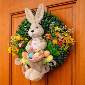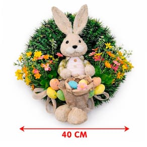 Guirlanda De Páscoa Decoração Cesta Ovos Coelho Arranjo 40cm -