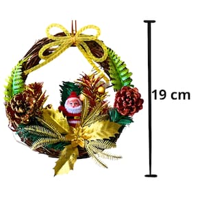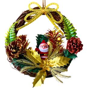 Adicione um toque encantador e acolhedor à sua decoração de Natal com esta linda guirlanda decorada. Com 19 cm de diâmetro, ela é perfeita para decorar portas, paredes ou até mesmo mesas, criando um ambiente festivo e cheio de charme. A guirlanda é confeccionada em sisal, um material natural que dá um toque rústico e elegante. Ela é adornada com detalhes cuidadosamente escolhidos, como pequenas pinhas que evocam a magia do inverno e o espírito natalino. O Papai Noel, com seu sorriso simpático e traços clássicos, completa a decoração com uma dose extra de alegria e tradição.