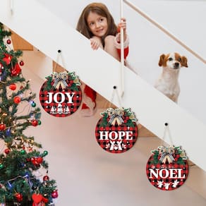 6 grinaldas de Natal xadrez de búfalo para porta – guirlandas de placas de decoração de Natal rústicas para decoração de parede de garagem, ambientes internos e externos - 6 grinaldas de Natal xadrez de búfalo para porta – guirlandas de placas de decoração de Natal rústicas para decoração de parede de garagem, ambientes internos e externos