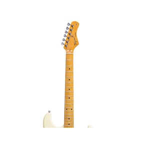 Especificações técnicas: • CORPO: Basswood • BRAÇO: Maple - Shape C • ESCALA: Maple - 22T - C 25.5”- R 9.5” • NUT: Plástico - 43mm • CAPTADORES: 3 single coils cerâmicos by Tagima • CONTROLES: Chave 5 posições, 1 volume e 2 tonalidade • PONTE: Tremolo • TARRAXAS: Diecast • COR: Olympic white • ESCUDO: AWH