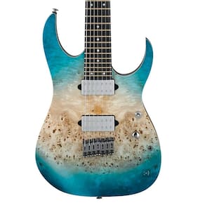 Guitarra ibanez eletrica rg-1127pbfx-cif w c/bag 7 cordas Características wizard ii-7 11pc maple / walnut / purpleheart pescoço tampo de poplar burl / corpo de basswood americano escala de ébano com incrustações de pontos em madrepérola jescar evo gold trastes c / tratamento premium da borda do traste dimarzio covered fusion edge-7 h coletor de braço captador de ponte dimarzio covered fusion edge-7 h de torneira da bobina ponte monotrilho cosmo black hardware cabeças da máquina de travamento gotoh mg-t embutimento de ponto lateral luminescente gig bag incluso Marca: Não Informado