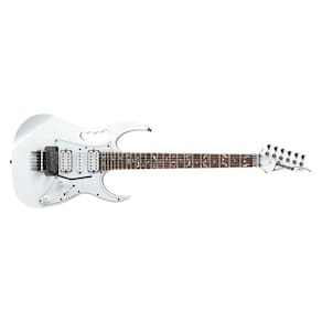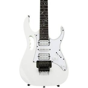 O estilo icônico do Modelo JEM JR é esculpido em mogno, e apresenta a marca registrada JEM “Monkey Grip” cortada perto do Cutway superior, junto com um acabamento branco. Steve Vai prefere o esquema HSH padrão da indústria de metal para uma versatilidade tonal maximizada. O JEMJR apresenta um trio de captadores Ibanez Quantum. Os humbuckers nas posições de braço e ponte apresentam captadores cerâmicos que reproduzem mais harmônicos do que captadores humbucking convencionais. O captador single coil no meio oferece um timbre mais tradicional. Os controles simplificados incluem um volume principal, um tom mestre e uma chave comutaçao de 5 way, oferecendo infinitas variações tonais e timbre explosivo.