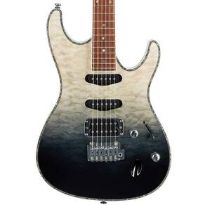 Guitarra Ibanez SA360NQM-BMG Black Mirage Gradation A série SA da marca japonesa Ibanez apresenta guitarras elétricas com características sonoras versáteis. Elas podem ser facilmente identificadas entre outras guitarras Ibanez por seu tampo arqueado, tremolo sincronizado e configuração de captação HSS.