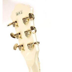 A Ibanez AF75TDG Branca (Ivony) é uma guitarra semiacústica com sonoridade aveludada e timbres brilhantes. Possui 4 knobs (2 tones e 2 Volumes) e chave de 3 posições para timbrar com qualidade seus acordes e solos. Esta Ibanez AF75TDG vem com corpo em maple top, que valoriza o sustain e define muito bem seus arranjos. Possui braço colado, hardware Gold e ponte ART-2 Roller com VBF70 vibrato.