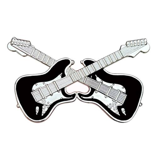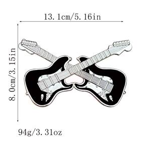 Material: liga leve Peso: 94 g Tamanho: 13,1x8 cm Design exclusivo de guitarra: apresenta duas guitarras elétricas cruzadas, um design arrojado e energético para amantes da música e entusiastas do rock. Material de liga premium: feito de liga de alta qualidade, proporcionando um acabamento durável e elegante que durará anos. Elegante e estiloso: perfeito para adicionar um toque punk rock ou musical a qualquer roupa, seja casual ou esportiva. Ajuste versátil: projetado para caber na maioria das tiras de cinto padrão, oferecendo um ajuste seguro e confortável para jeans e cintos de couro. Ótimo para fãs de música: um acessório indispensável para músicos, fãs de guitarra ou qualquer pessoa que queira mostrar sua paixão pelo rock.