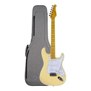 Guitarra Seizi Vintage Rising Sun Ozielzinho SSS Cream Descrição A guitarra Seizi Vintage Ozielzinho Rising Sun SSS é uma peça que une tradição e inovação, ideal para guitarristas que buscam um instrumento com visual clássico e alta performance sonora. Com estilo Strato, esta guitarra possui acabamento Gloss na cor Cream, destacando seu design elegante e atemporal. Seu corpo em Basswood proporciona leveza e um timbre equilibrado, enquanto o braço em Maple com perfil C Thin e escala maple escalopada oferece conforto e facilidade na execução. O exclusivo perfil escalopado da escala traz ainda mais controle e precisão ao toque, complementado pelos trastes Medium Jumbo em aço inox, que garantem durabilidade e tocabilidade superior. A eletrônica da Vintage Ozielzinho Rising Sun SSS é composta por três captadores Seizi Jutsu Single em ALNICO V, que entregam um som com definição cristalina, agudos brilhantes e graves potentes, ideal para diferentes estilos musicais. A ponte flutuante com dois pivôs e alavanca permite expressividade e variações sonoras únicas, enquanto os controles de volume e tone, juntamente com a chave seletora de cinco posições, oferecem versatilidade para o músico explorar uma ampla paleta sonora. Além disso, a guitarra vem acompanhada de um bag DeLuxe em vinil, que protege o instrumento com estilo e praticidade. Especificações Técnicas: - Corpo: - Formato: Strato - Material: Basswood - Acabamento: Gloss - Braço: - Material: Maple - Perfil: C Thin - Material da escala: Maple - Comprimento da escala: 64,8 cm - Raio da escala: 30,48 cm - Perfil da escala: Escalopado - Quantidade de trastes: 22 - Trastes: Medium Jumbo aço inox - Largura da pestana nut : 4,25 cm - Material da pestana: Osso Bone - Marcação: Dot - Hardware: - Ferragens: Cromadas - Ponte: Flutuante com 2 pivôs e alavanca - Tarraxas: DieCast com travas - Escudo: Pearloid - Controles: Brancos - Cobertura da chave seletora: Branca - Captador da ponte: Seizi Jutsu Single ALNICO V - Captador do meio: Seizi Jutsu Single ALNICO V - Captador do braço: Seizi Jutsu Single ALNICO V - Controles: 1 volume, 2 tone - Chave seletora: 5 posições - Conector de saída: 1/4 - Cordas: .010, .013, .017, .026, .036, .046 - Case: Bag DeLuxe em vinil : meses de pelo fabricante. Origem: China Imagens meramente ilustrativas, podendo haver variação de cor
