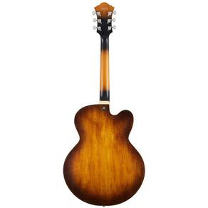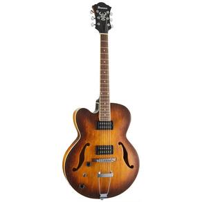 Guitarra ibanez af 55. Semi acústica da série artcore. Disponível na cor tobacco flat. Esta guitarra é uma de nossas linhas mais tradicionais de guitarras com um largo corpo totalmente cavado que é, de fato, totalmente cavado. Diferente de muitos instrumentos full-acoustic que trazem soundblocks no corpo, todos as guitarras da ibanez são completamente ocas, para um timbre rico e complexo, que você só consegue com uma verdadeira hollow body