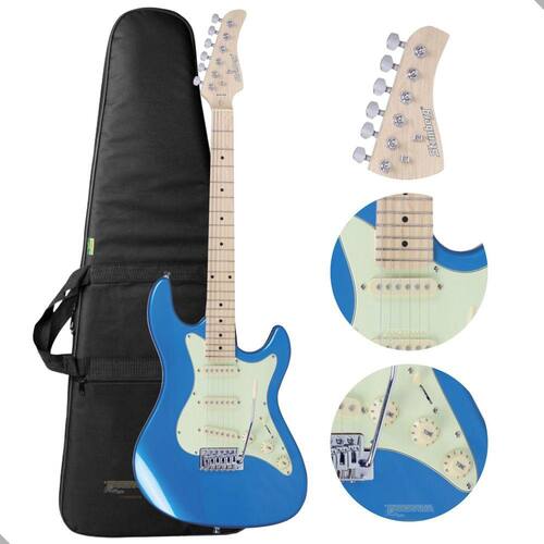 - Modelo: STS100 - Formato do Corpo: Strato - Madeira do Corpo: Basswood Sólido - Tampo: N/A - Acabamento: Brilhante - Braço: Maple - Construção: Bolt-On Neck Junção Parafusada - Escala: Maple 25,5 - Marcações: Dots - Tensor: Sim. Bilateral - Nut Capo Traste : 42,5mm - Número de Trastes: 22 - Encordoamento: .09 / .042 - Número de Cordas: 6 - Ponte: Trêmulo Vintage 6 Parafusos - Captador Ponte: Single Coil Passivo - Captador Meio: Single Coil Passivo - Captador Braço: Single Coil Passivo - Jack: P10 - Tarraxas: Blindadas Cromadas - Escudo: Mint Green - Utilização/Mão: Destro - Controles: Potenciômetro de Volume 1 , Potenciômetro de Tonalidade 2 e Chave Seletora de 5 Posições.