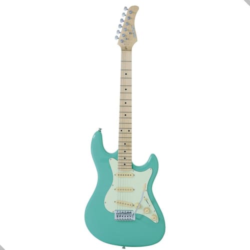 Guitarra modelo Strato de timbre brilhante, diversas opções de cores e com ótima tocabilidade. Possui 3 captadores Single Coil de sonoridades versáteis, chave de 5 posições e ponte móvel com alavanca. Características Gerais - Modelo: STS100 - Formato do Corpo: Strato - Madeira do Corpo: Basswood Sólido - Tampo: N/A - Cor: Surf Green SG - Acabamento: Brilhante - Braço: Maple - Construção: Bolt-On Neck Junção Parafusada - Escala: Maple 25,5 - Marcações: Dots - Tensor: Sim. Bilateral - Nut Capo Traste : 42,5mm - Número de Trastes: 22 - Encordoamento: .09 / .042 - Número de Cordas: 6 - Ponte: Trêmulo Vintage 6 Parafusos - Captador Ponte: Single Coil Passivo - Captador Meio: Single Coil Passivo - Captador Braço: Single Coil Passivo - Jack: P10 - Tarraxas: Blindadas Cromadas - Escudo: Mint Green - Utilização/Mão: Destro - Controles: Potenciômetro de Volume 1 , Potenciômetro de Tonalidade 2 e Chave Seletora de 5 Posições. Conteúdo da Embalagem: - 01 Guitarra Outras Informações: - : 03 meses Marca: Não Informado