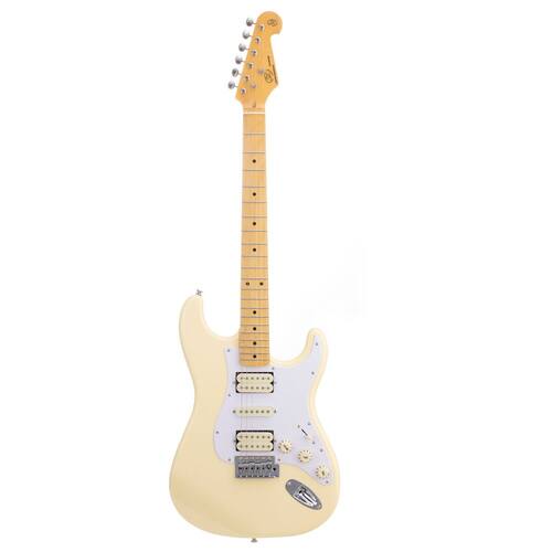 Guitarra SX SST 57 HSH VWH, com corpo em basswood, braço e escala em maple, ponte standard tremolo. No acabamento Vintage White.