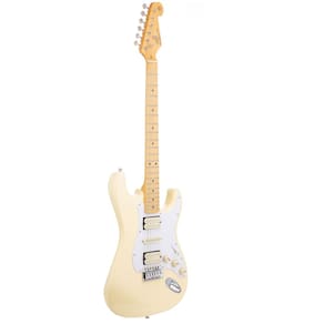 A guitarra SX SST 57 HSH VWH, conta com 21 trastes, corpo em basswood, braço em maple, escala em maple, 2 Humbucker + 1 Single-Coil, tremolo standard, 2 controles de tonalidade, 1 volume, chave de 5 posições, marcação dot, ferragens cromadas, acompanha Gig Bag de nylon e chave para regulagem do tensor/ponte.
