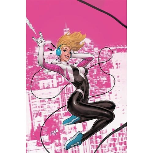 Acompanhe a primeira turnê da melhor girl band da Terra-65! As Mary Janes! Elas estão em um circuito de quatro cidades e Gwen prometeu à banda que essa grande oportunidade seria toda sobre música. Sem teias, apenas bateria. Mas quando um assassino misterioso mira na atração principal, Gwen começa a se perguntar como se envolveu nisso tudo. Além disso, o Hulk parece estar no encalço das estrelas do rock! O que Bruce Banner da Terra-65 realmente quer? Esta turnê deveria ser apenas sobre música, mas quando os experimentos de Bruce Banner produzem resultados surpreendentemente simbióticos, Gwen finalmente terá que escolher um lado nesta festa de super-heróis!