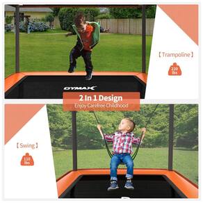 2 em 1 trampolim Este trampolim infantil foi projetado exclusivamente com um balanço, que não apenas permite que seus filhos pulem, mas também permite que seus filhos balancem livremente nele. Tenha vários entretenimentos com este trampolim especial. Segurança em primeiro lugar Sempre mantemos a segurança das crianças em mente. A almofada de espuma macia cobre todas as molas para evitar que as mãos ou os pés fiquem presos na abertura. Além disso, os tubos superiores também são acolchoados com espuma macia, não deixando você se preocupar em esbarrar nos tubos por acidente. Estrutura resistente Construído com 2 estruturas de aço galvanizado em forma de U, este trampolim é antiferrugem para uso externo e estável para segurança. Além disso, vem com forte capacidade de carga para diferentes zonas 100 kg para trampolim e 50 kg para balanço. Zíper e fivela de segurança Com zíper conveniente, o trampolim de salto é fácil para o seu pequeno entrar e sair. Enquanto isso, a fivela de segurança dupla garante que as crianças não caiam por acidente