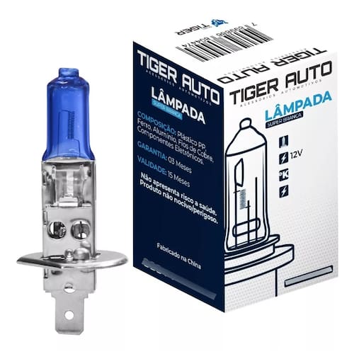O produto é constituído por uma unidade de lâmpada Super Branca Tiger Auto com encaixe H1 e 55W de potência.