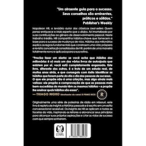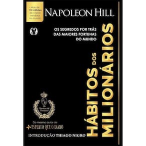 Napoleon Hill, o lendário autor dos clássicos best-sellers Quem pensa enriquece e Mais esperto que o diabo, foi imortalizado por suas contribuições ao gênero de desenvolvimento pessoal. Neste trabalho inédito, Hill compartilha hábitos-chave que fornecem a base para o sucesso de mudança de vida. Hábitos dos milionários explica as regras fundamentais que constroem uma vida próspera e revisita conceitos já consolidados de Hill, porém de uma maneira totalmente nova e aplicada para a sua rotina. “Preciso fazer um alerta: se você acha que Hábitos dos milionários é só mais um dos vários livros de autoajuda que existem por aí, você está completamente enganado. Este livro, diferente dos outros, é o fruto de um estudo real, de muitos anos atrás, e que conseguiu com êxito identificar os hábitos que fazem parte do dia a dia das pessoas de sucesso. O que ele propõe não é uma criação, mas algo ainda mais valioso: ele propõe a comprovação de que as pessoas mais bem-sucedidas do mundo têm os mesmos hábitos – e propõe lhe ensinar quais hábitos são esses”. TIAGO NIGRO