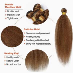 - ?Loiro Kinky Straight Bundles Cor?: Os pacotes são P4/30, marrom e cor loiro néctar das flores. Pode ser alisado, enrolado, estilizado como seu próprio cabelo.