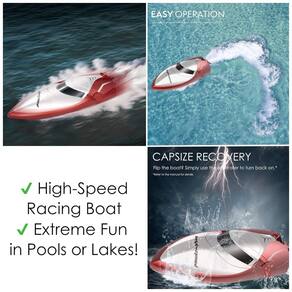 motor de alta potência com excelente sistema de refrigeração a água e servo de direção de alto torque que oferece desempenho ágil e aventura e diversão intermináveis ao ar livre Possui design anti flip durável, proteção de hachura dupla para melhor resistência à água, aviso de bateria fraca emite um bipe quando baixa, display LCD no controlador com nível de bateria e indicadores de nível de sinal. Funções Avançar, Recuar, Esquerda, Direita, recuperação virada de 180 graus. Velocidade 15 MPH 25 KM , H Controlador de frequência de amplo alcance de 2,4 GHz com distância de controle de até 500 pés, total proporcionalidade e anti interferência que permite que vários produtos de hobby R , C sejam s ao mesmo tempo. Vem com 2 baterias de barco para tempo de jogo extra Alimentado com bateria de íon lítio recarregável de 7,4 V 600 mAh de alta qualidade incluída. O tempo ideal de carga é de 120 minutos e o tempo de jogo é de 7 a 10 minutos. Recomendado para maiores de 14 anos. Requer 4 pilhas tamanho AA para o controlador não incluídas. Tempo de jogo adicional pode ser obtido obtendo baterias extras em ASIN B07C9519BY pesquisa na barra de pesquisa da Materiais de alta qualidade fabricados de acordo com as normas internacionais de saúde e segurança. CUIDADO Para uso em água doce piscinas, lagos, etc. NÃO para água salgada mar ou oceano. Verifique o produto quanto a danos , água antes de cada uso Marca: Não Informado
