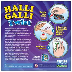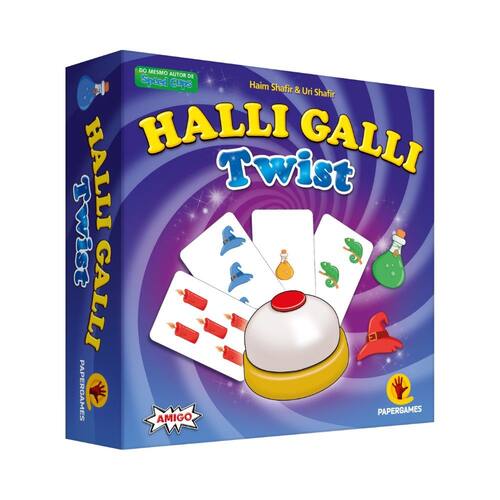 Halli Galli Twist é diversão garantida para todas as idades, trazendo um novo desafio ao clássico Halli Galli! Um jogo rápido, de observação e velocidade, do premiado autor Haim Shafir, criador do Speed Cups.