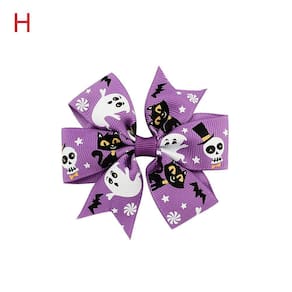 Halloween Childrens Hairpin Kids Pumpkin Print Girls Cute Bow Acessórios de cabelo 100% novo e de alta qualidade. Quantidade: 1 Material: Poliéster Tamanho: 1PCS/SET Diâmetro do gancho de cabelo: 8cm x 8cm Muito bonito para crianças Ótimo traje para vestir, cosplay, dança e festa Novo estilo de moda para o seu bebê Observe que uma ligeira diferença de cor deve ser aceitável devido à luz e à tela. Conteúdo do pacote: 1 pino de cabelo contém 1 peça