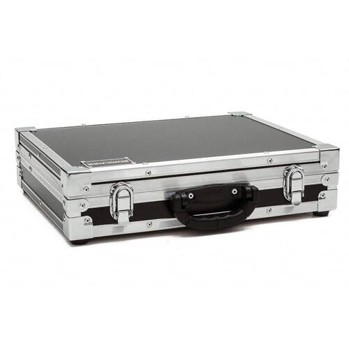 Estrutura de 6mm revestido em laminado tx preta Perfil macho e fêmea de 6mm de alumínio para maior resistência Cantoneira em L nas laterias de 15mm Acabamento interno em espuma de alta densidade com o recorte para cada peça do sistema Fechos cromados Cantos de metal cromado