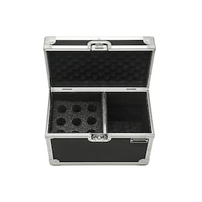 Hard Case Microfone Baú 9 Microfones Shure, Sennheiser Case Estojo Baú Mala para 9 Microfones mais espaço para cabos e acessórios Estrutura de 6mm revestido em laminado tx pretaPerfil macho e fêmea de 6mm de alumínio para maior resistênciaCantoneira em L nas laterias de 15mmAcabamento interno em espuma de alta densidade 10 mmFecho cromado embutido Cantos de metal cromado Dimensões Internas livresLargura 20+ 15 (cm) Profundidade 18 (cm)Altura 23 (cm) Peso aproximado4,900 kg