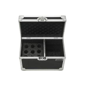Hard Case Microfone Baú 9 Microfones Shure, Sennheiser Case Estojo Baú Mala para 9 Microfones mais espaço para cabos e acessórios Estrutura de 6mm revestido em laminado tx pretaPerfil macho e fêmea de 6mm de alumínio para maior resistênciaCantoneira em L nas laterias de 15mmAcabamento interno em espuma de alta densidade 10 mmFecho cromado embutido Cantos de metal cromado Dimensões Internas livresLargura 20+ 15 cm Profundidade 18 cm Altura 23 cm Peso aproximado4,900 kg