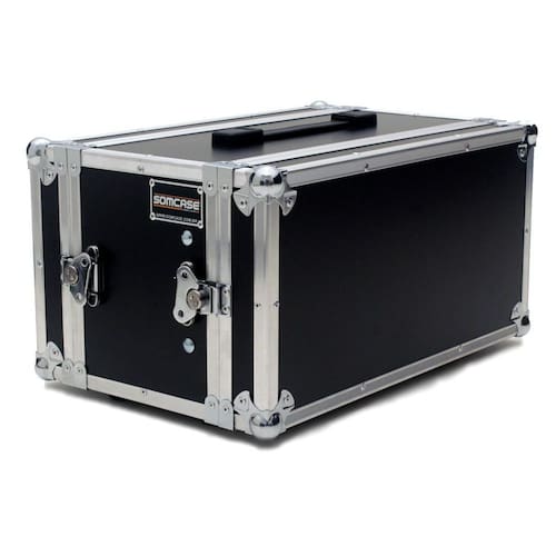 Estrutura de 6 mm revestido em Laminado TX preta Perfil macho e fêmea de 6mm de alumínio para maior resistência Cantoneira em L nas laterias de 15 mm Acabamento interno em espuma de alta densidade de 5mm 4 fechos externo tipo borboleta 8 Cantos de metal cromado 1 Alça plana emborrachada 8 Parafusos para fixação de equipamentos