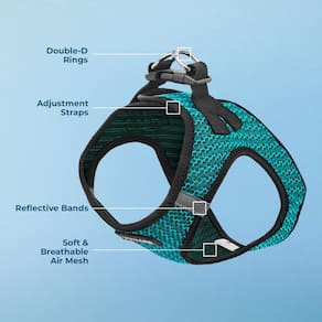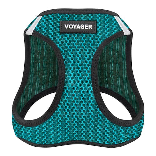 Best Pet Supplies - Malha para todos os climas, refletiva, sem puxar para cães pequenos, médios e gatos - Seguro com fecho de fecho aderente, fivela, anéis D duplos - Turquesa 2 tons, GG