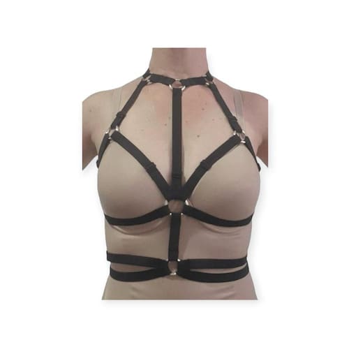 O design deste harness é realçado por argolas metálicas cuidadosamente posicionadas, que não apenas adicionam um toque visualmente , mas também evocam uma aura de sofisticação rebelde. Esses elementos metálicos são o coração do design, conferindo ao Harness Rage um caráter único que se destaca tanto em composições de moda do dia a dia quanto em ambientes mais íntimos de exploração BDSM.