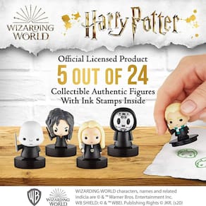 Bem-vindo ao The Wizarding World Lançar um feitiço com PMI! Dê vida à magia, dobrando como selos coloridos e figuras de ação legais. Passeie por Hogwarts, jogue quadribol ou arrisque um duelo com seus estampadores de Harry Potter! A criatividade é um tipo especial de magia. Auto-tinta e lavável, seus estampadores estão prontos para decorar cartas, pergaminhos e artesanato. Na parte inferior de cada figura há um carimbo do rosto desse personagem, com tinta vermelha, preta, verde, rosa, azul ou marrom suficiente para durar cerca de 200 selos. Comemore, Estilo Mago. Seja para um aniversário, Halloween, ou apenas porque, faça a festa mais mágica com o PMI! Coloque suas figuras ao redor do castelo, use-as como um topper de bolo de Harry Potter ou faça-as adereços de jogo.