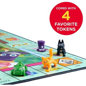 O jogo Monopoly Junior projetado para jogadores mais jovens é rápido, simples e apresenta propriedades amigáveis para crianças. Esta edição vem com 4 tokens favoritos: Little Scottie, Little Hazel, Toy Car, e o famoso cartola pelo Sr. Monopólio. Os jogadores movem seus tokens ao redor do tabuleiro, comprando as propriedades que amam, como o zoológico, e um fliperama de videogame. É divertido para eles colocar uma placa de "vendido" em sua própria propriedade. Os pais geralmente gostam de apresentar seus filhos à contagem e à matemática simples das transações. Notas únicas mantêm as transações rápidas e fáceis. Quando um jogador vai à falência, os outros contam seu dinheiro e o jogador com mais dinheiro ganha o jogo. Os nomes e logotipos hasbro gaming, Parker Brothers e Monopoly, o design distinto do tabuleiro de jogos, os quatro quadrados de canto, o nome e o caráter mr. Monopoly, bem como cada um dos elementos distintos do tabuleiro e peças de jogo são marcas comerciais da Hasbro para seu jogo de negociação de propriedades e equipamentos de jogo.