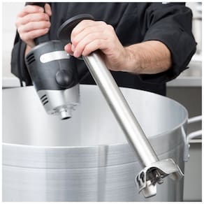 A haste Waring WSB50ST de 30 cm é um eixo removível projetado para liquidificadores de imersão pesados Big Stik da Waring Commercial, permitindo mistura em panelas menores de até 25 litros em cozinhas profissionais. Construída em aço inoxidável monobloco, suporta rotações variáveis até 18.000 RPM para purês, sopas e emulsões de volume moderado. Indicada para preparações precisas em restaurantes e cozinhas industriais.