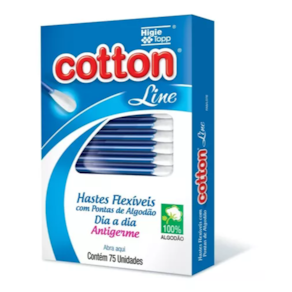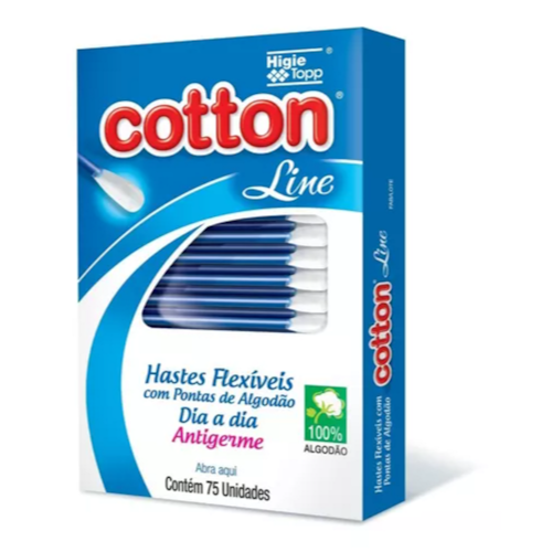 Hastes flexíveis/Cotonetes Cotton Line contendo 75 unidades.