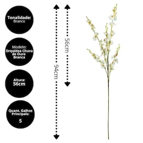 Leve elegância e sofisticação para sua decoração com a Haste de Orquídea Chuva de Ouro Artificial Branca! Com 50cm de comprimento, essa haste possui um design delicado e realista, perfeito para composições florais sofisticadas.
